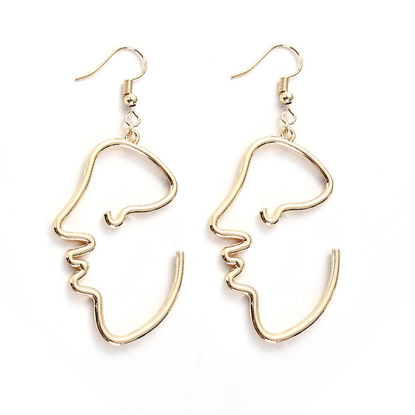 Hoop Earrings: Hoop Abstract Face Great Conversation Piece, Artsy